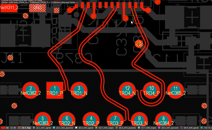 Ova verzija donosi podršku za postavljanje vodova diferencijalnog para pod bilo kojim kutem. Postavljanje vodova diferencijalnog para u ovom načinu rada podržava simetrično spajanje na lemna mjesta, promjenu razmaka i, kada držite pritisnutom tipku Shift, omogućuje postavljanje pomoću tangentnih lukova.